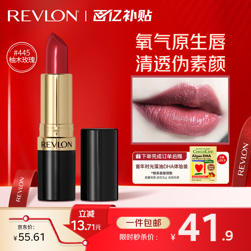 露华浓丽采保湿滋润唇膏黑管口红4.2g柚木玫瑰445#显白生日新年礼物女