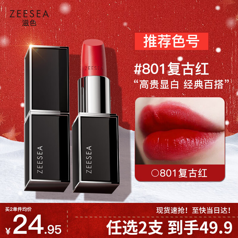 ZEESEA滋色黑管保湿口红801#复古红姿色持久滋润唇彩唇蜜唇釉新年礼物