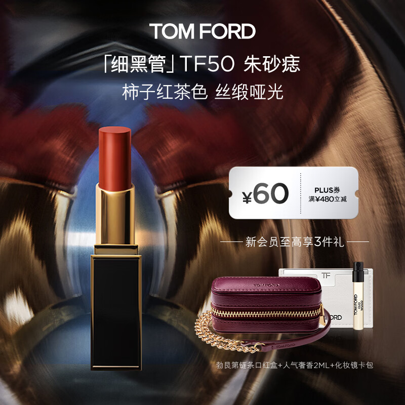 TOM FORD细黑管TF口红唇膏50丝缎哑光柿子红茶色 化妆品生日礼物女