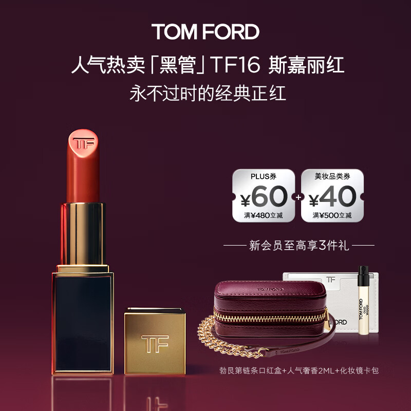 TOM FORD全新升级黑管水感缎光TF口红16经典正红色 唇膏化妆品生日礼物女
