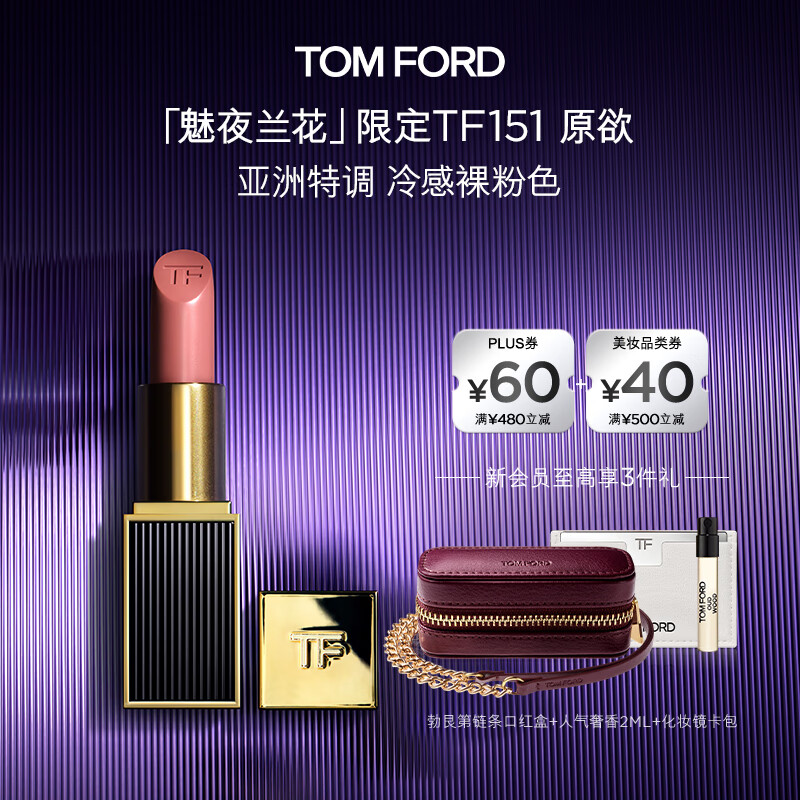TOM FORD魅夜兰花限定黑管水感缎光TF151口红裸粉色 唇膏化妆品生日礼物女