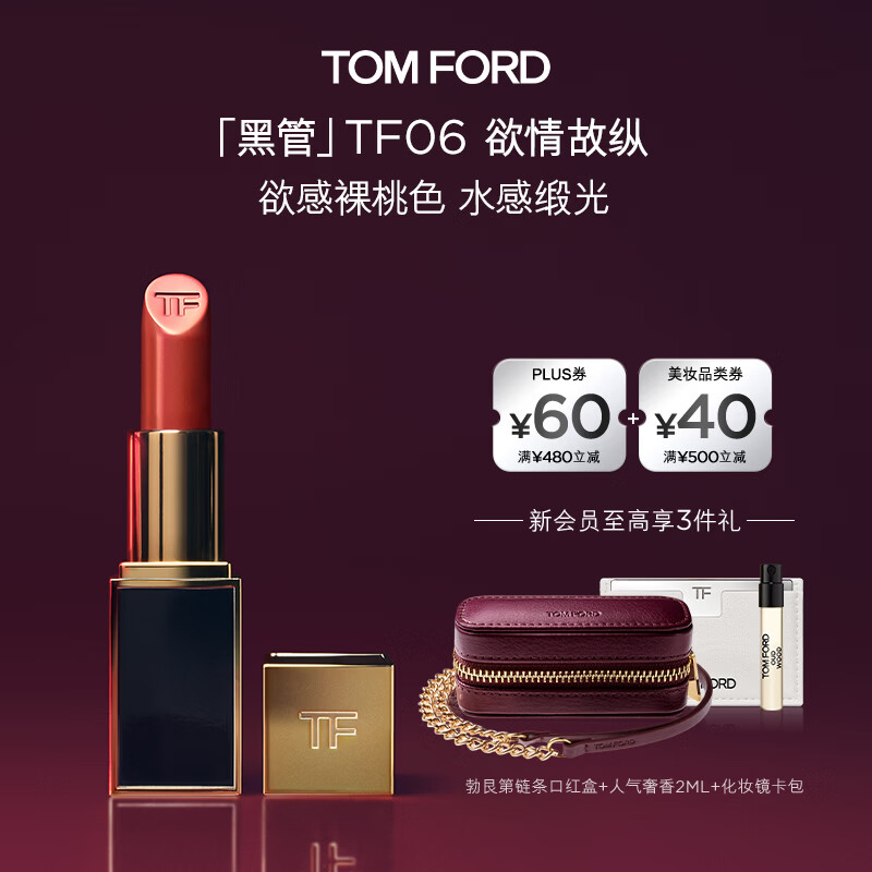 TOM FORD全新升级黑管水感缎光TF口红06欲感裸桃色 唇膏化妆品生日礼物女