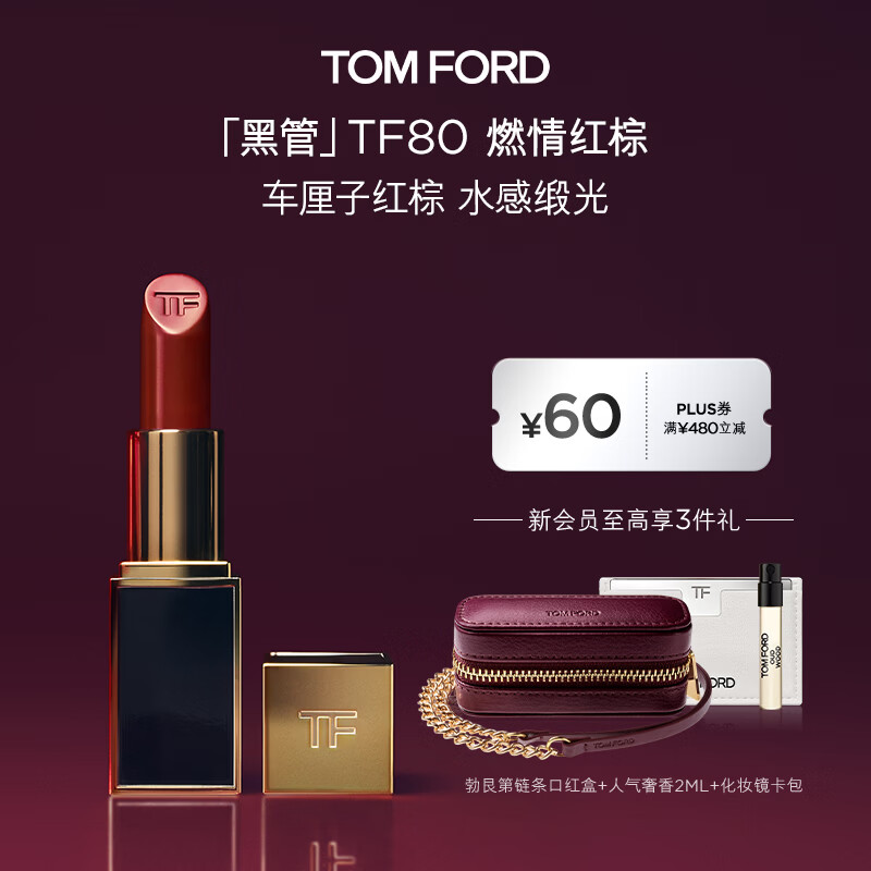 TOM FORD全新升级黑管水感缎光TF口红80车厘子红棕 唇膏生日礼物女