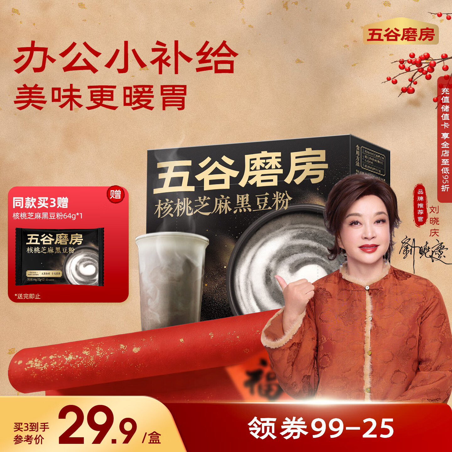五谷磨房低GI黑芝麻糊核桃芝麻黑豆粉早餐代餐粉64g
