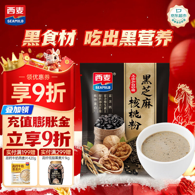 西麦黑芝麻核桃粉350g 燕麦片黑芝麻糊营养早餐五谷杂粮粉独立包装