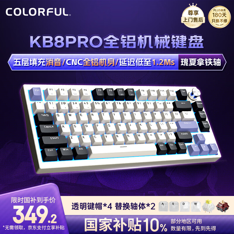 七彩虹(Colorful)KB8PRO81键机械键盘无线蓝牙三模连接隐姬铝坨坨客制化电竞游戏键盘 炽灰 瑰夏拿铁轴