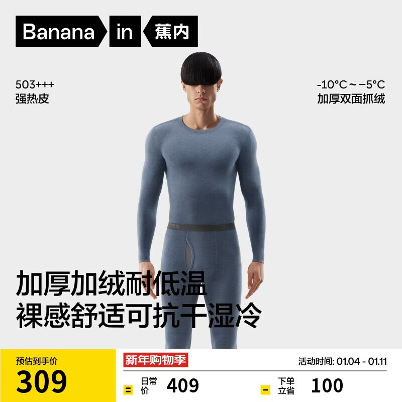 蕉内热皮303+++保暖内衣男女士秋衣秋裤套装7A抗菌加绒加厚秋冬季打底