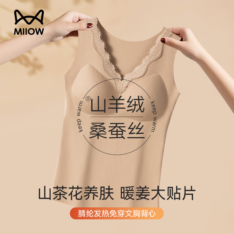 猫人(MiiOW)25年新款粉底液内衣女士保暖内衣女生保暖衣肌底衣带胸垫保暖背心
