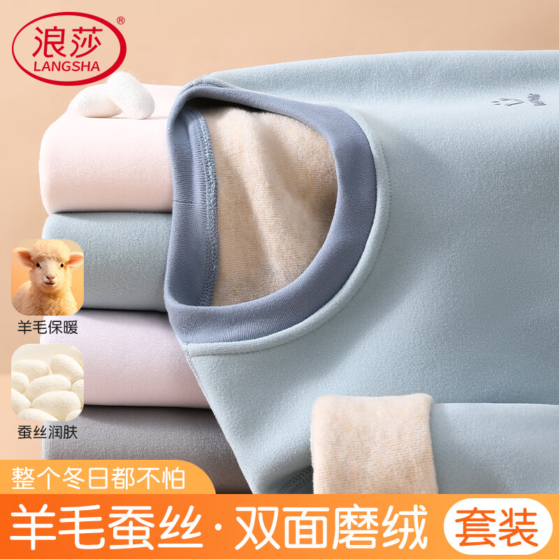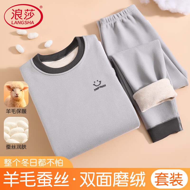 浪莎儿童保暖内衣加绒加厚男童7A抑菌防螨秋衣秋裤套装中大童