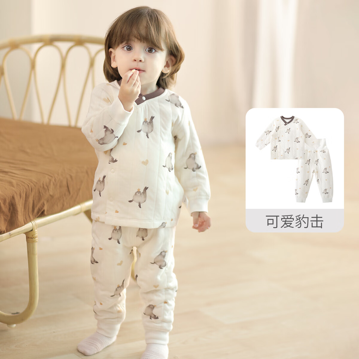 巴厘小猪宝宝秋衣秋裤夹丝加厚保暖男童睡衣女童秋冬分体衣服儿童内衣套装 可爱豹击 80
