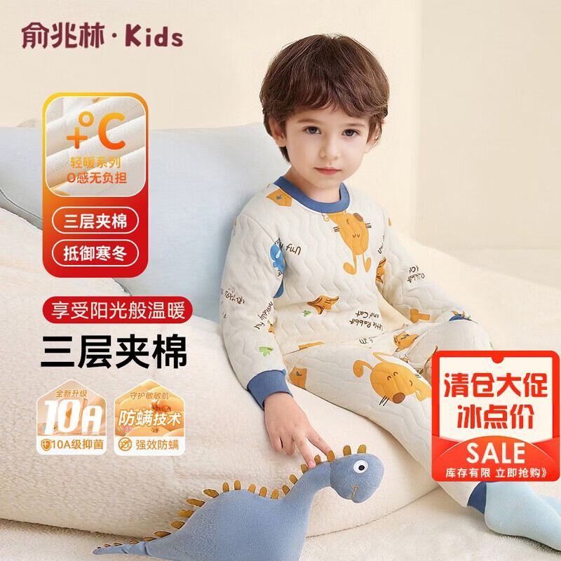 俞兆林(YUZHAOLIN)儿童保暖内衣男童秋衣秋裤套装冬季夹棉加厚睡衣童装 猫兔赛跑