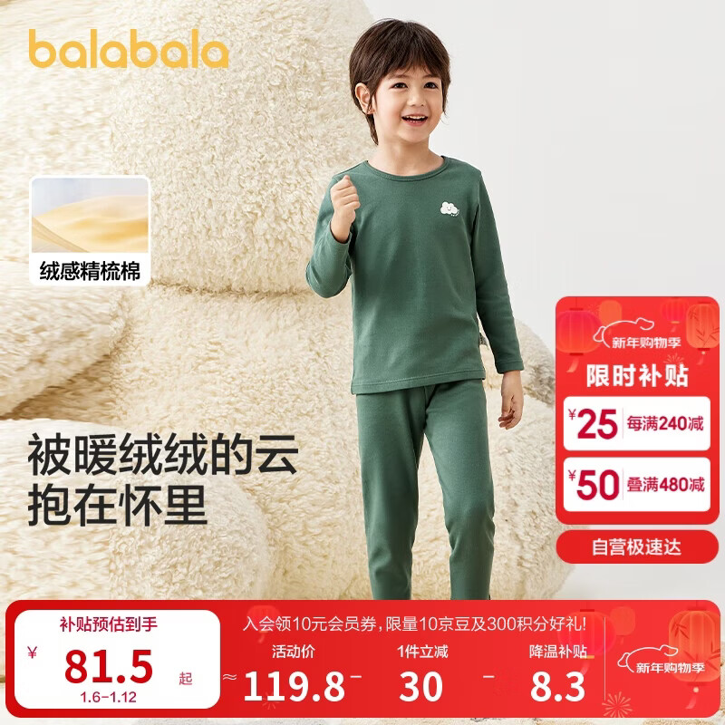 巴拉巴拉儿童保暖内衣套装秋冬加厚羊绒蛋白男童女童秋衣秋裤208424169203