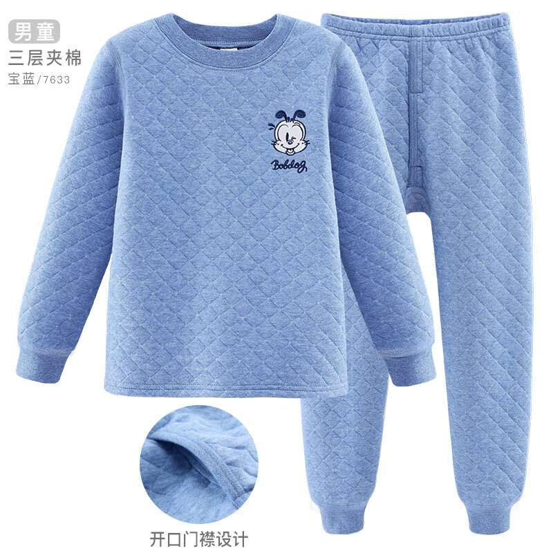 红豆居家(Hodohome)儿童保暖内衣男童半高领纯棉三层夹棉加厚空气层秋衣秋裤205蓝130