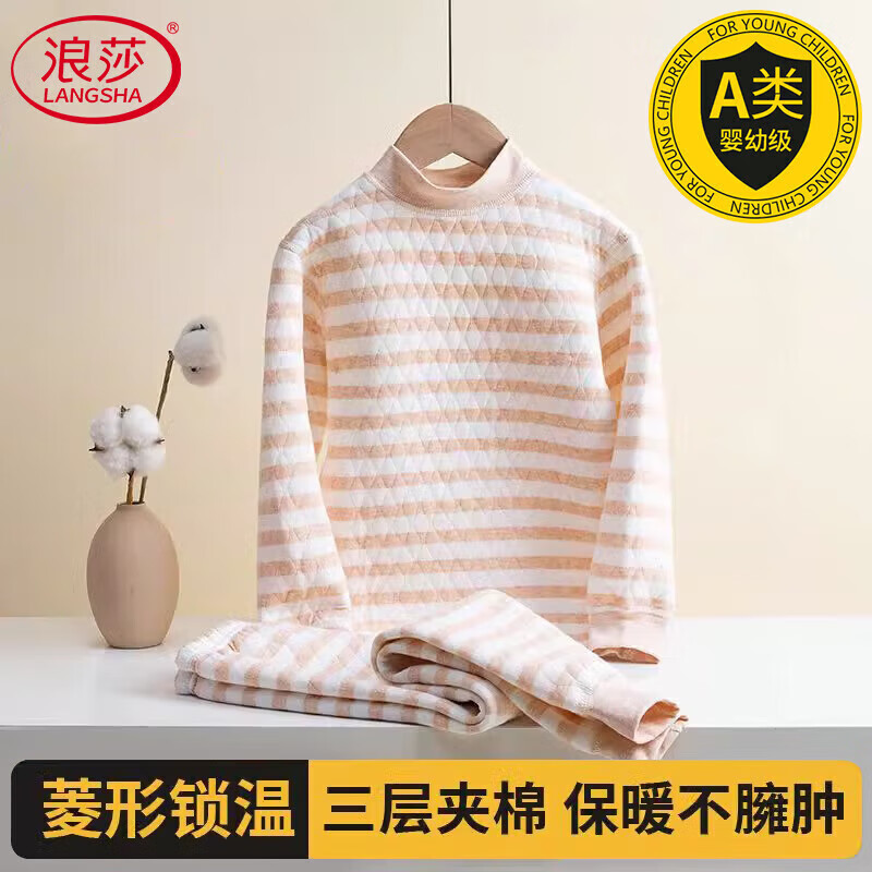 浪莎儿童内衣男童纯棉套装三层A类棉中大童加厚中领保暖内衣秋衣秋裤