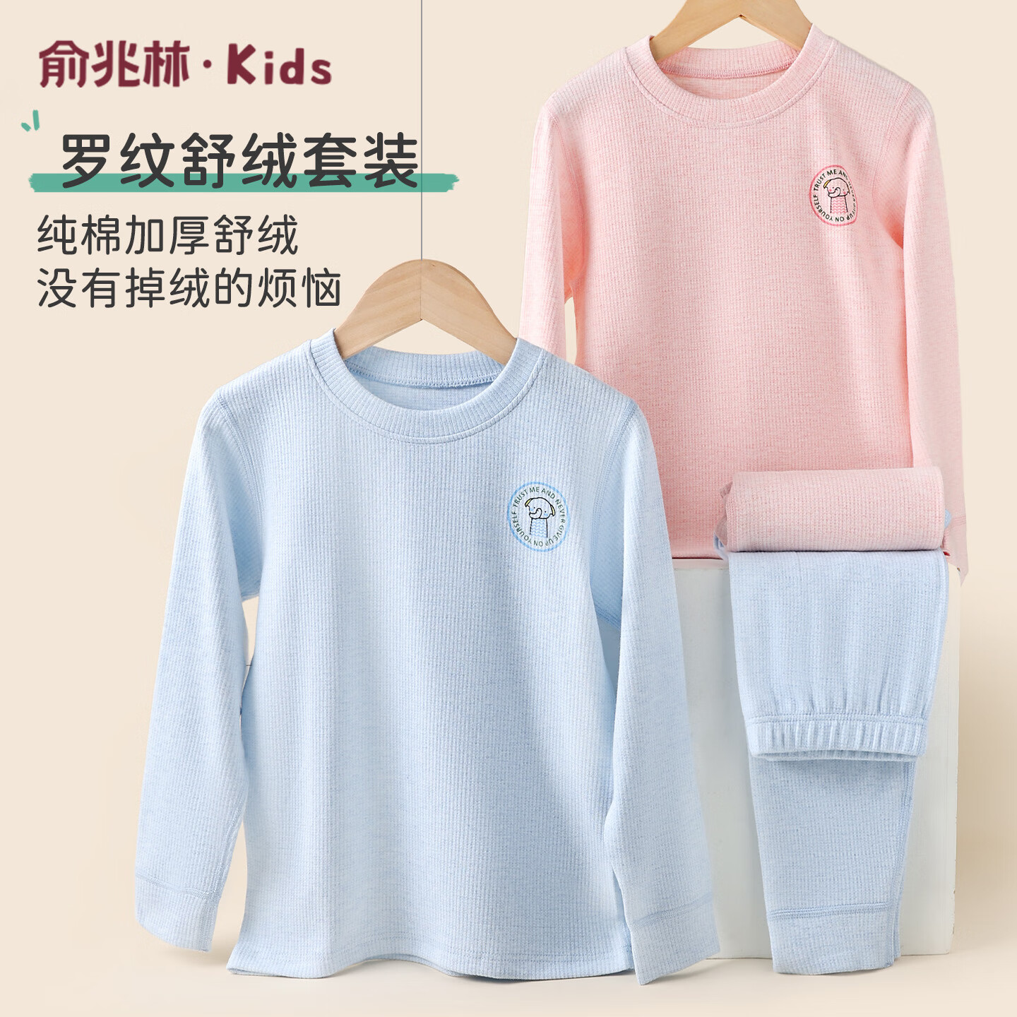 俞兆林儿童保暖内衣套装舒绒纯棉加厚秋冬季女童男童秋衣秋裤中大童女孩