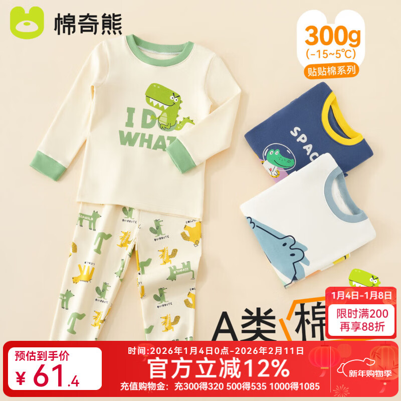 棉奇熊儿童秋衣秋裤棉质男童保暖内衣套装95%棉睡衣宝宝秋衣套装棉毛衫 恐龙先生【300克纯棉加厚保暖】 110 CM