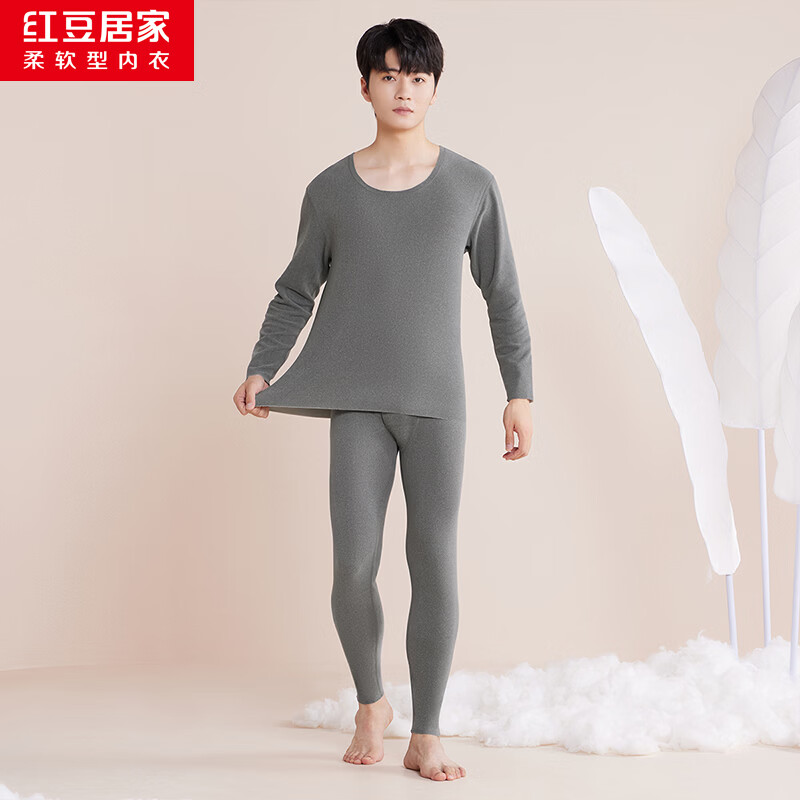 红豆居家(Hodohome)秋衣秋裤男女士7A级防螨保暖内衣中老年人打底衫 207男士墨灰 L 170/95