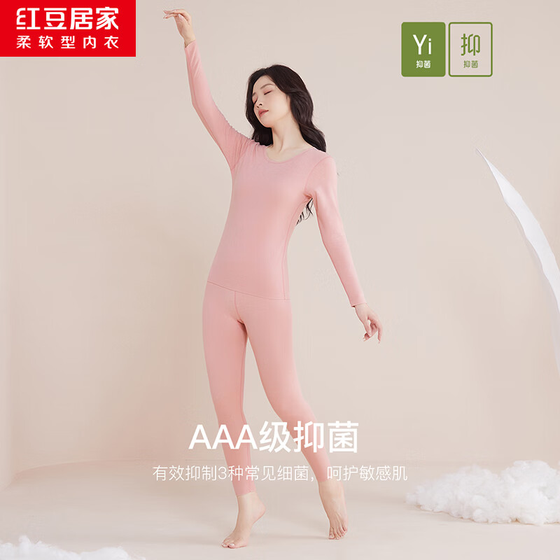 红豆居家(Hodohome)秋衣秋裤男女士7A级防螨保暖内衣中老年人打底衫 女士绯粉色 M 165/90
