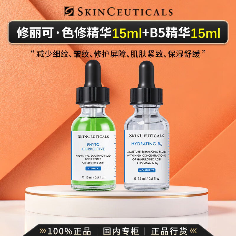 修丽可(SkinCeuticals)色修精华果酸五酸B5保湿淡斑发光瓶精华舒缓修护礼盒礼物送女友 【总量30ml】色修精华+B5保湿精华