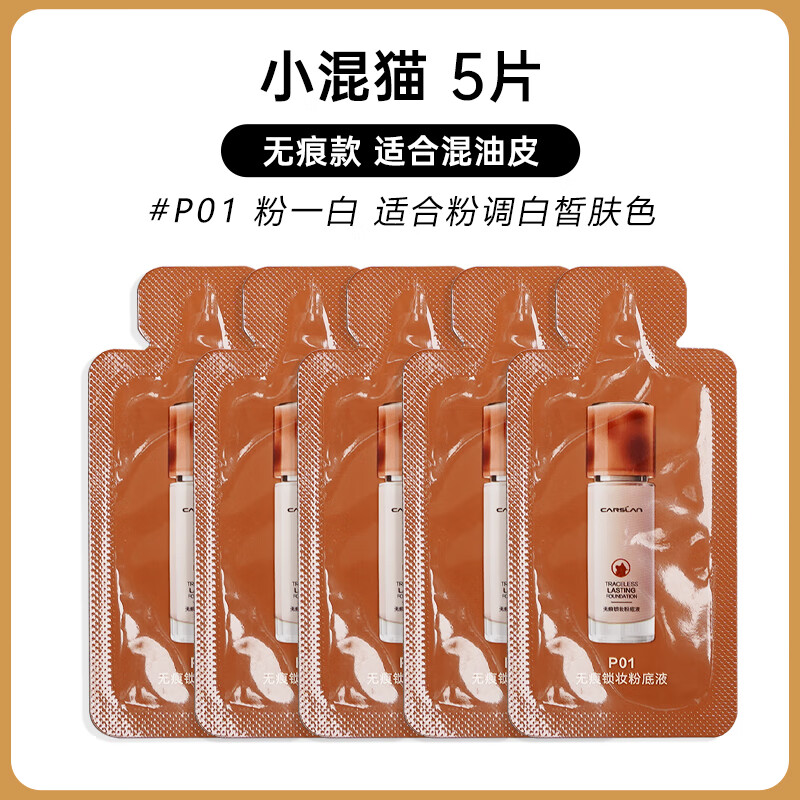 卡姿兰小奶猫粉底液小样试用装小夜猫水润遮瑕定妆修容不易卡 小奶猫粉底液P011g5包[专柜全码款]