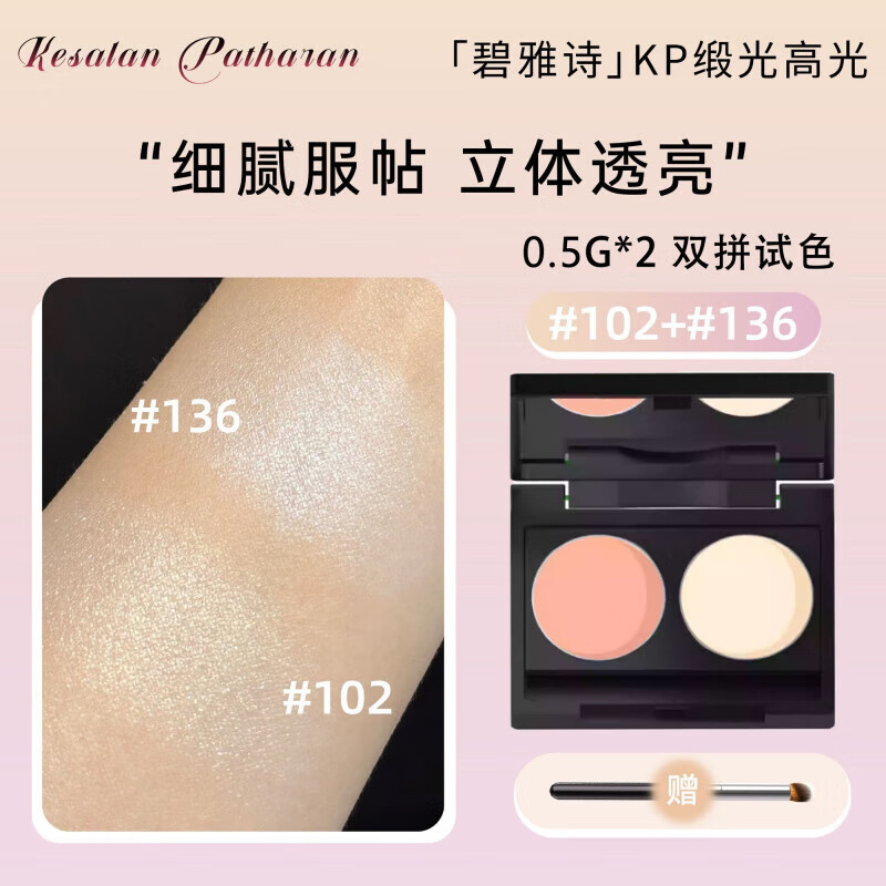 熏姿颜碧雅诗KP缎光高光小样小猴子推荐102提亮泪沟立体修容盘136试色 双拼试色 更优惠 对比叠涂都可以 0.3g