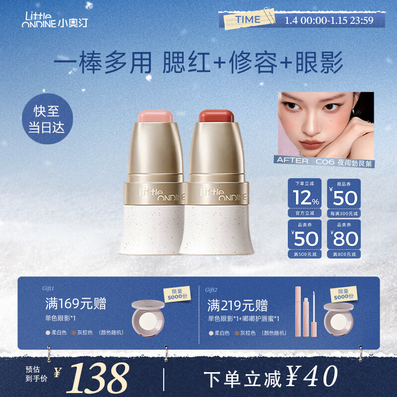 小奥汀(littleondine)多用棒E01春光水粉+C06夜闯勃艮第眼影修容口红修容提亮新年礼物