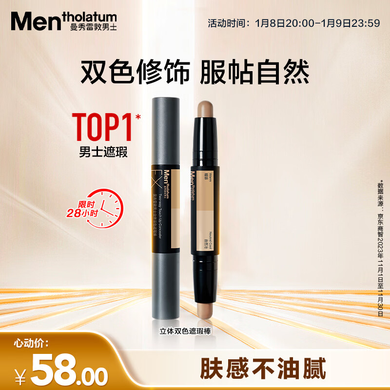 曼秀雷敦男士立体双色遮瑕棒2.8g提亮遮瑕二合一自然修容防水防汗化妆品男