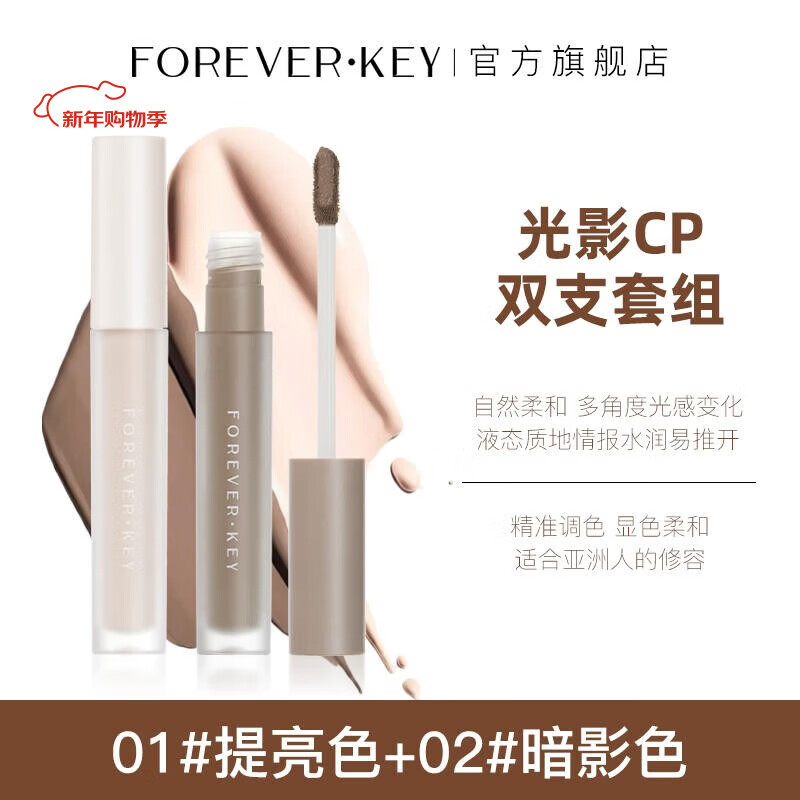 FOREVER·KEY液体修容棒鼻影阴影修容液高光侧影提亮液暗笔 01提亮色+02暗影色7g