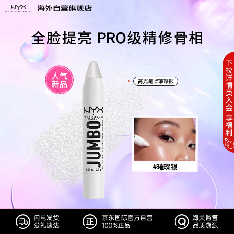 NYX逆色胖胖高光笔02璀璨银2.7g 眼影棒高光修容美妆卧蚕提亮礼物女