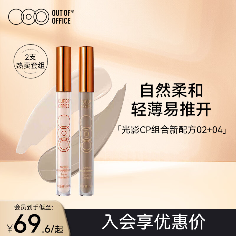 OUT-OF-OFFICE光影cp组合液体OOO修容液阴影笔高光笔提亮遮瑕修饰美妆立体彩妆 【主推产品】光影CP组合新配方02+04