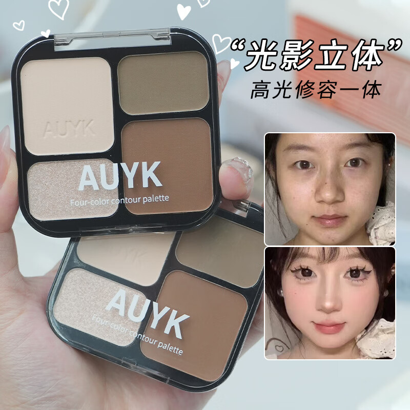 AUYK四色高光修容盘哑光高光修容腮红双色提亮一体阴影鼻影 8g AUYK四色高光修容盘01#