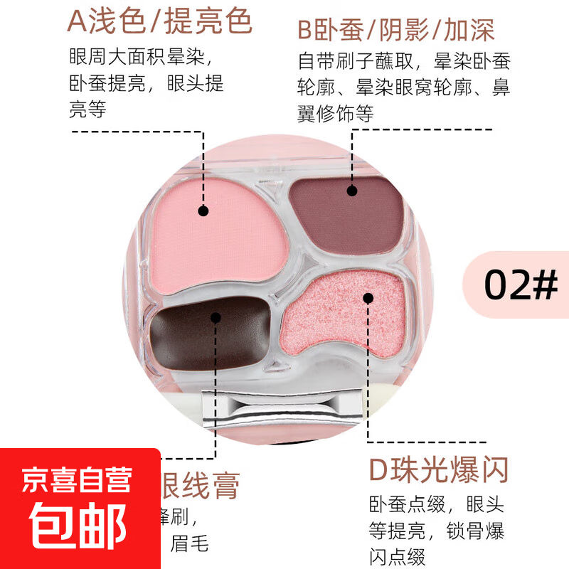 卧蚕下至眼影眼线修容盘四色彩妆多功能一体盘提亮阴影高珠光腮红 02#甜蜜裸粉