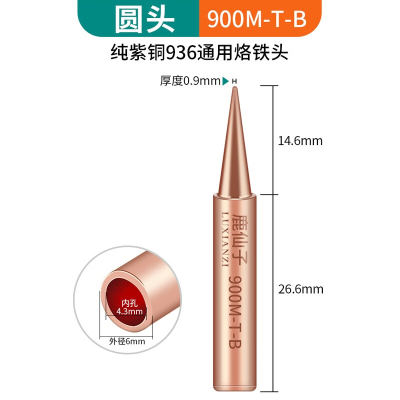鹿仙子936纯紫铜电烙铁头 内热式恒温洛铁头尖嘴马蹄刀头焊台通用型 圆嘴B