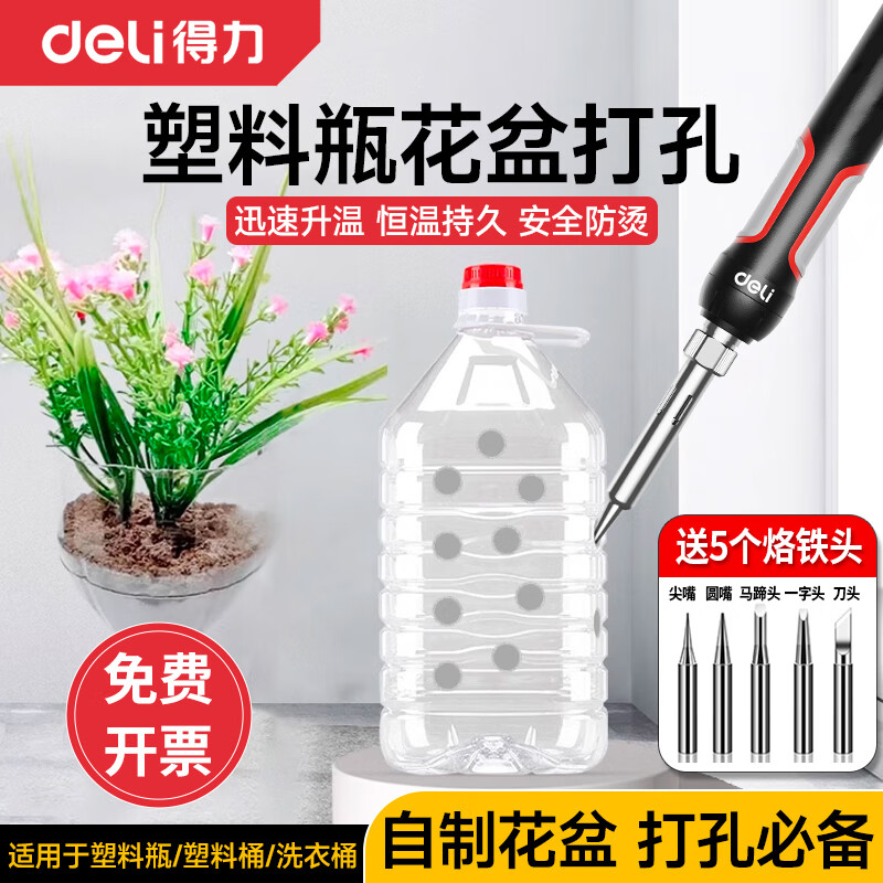 得力(deli)电烙铁塑料瓶烫孔花盆打孔工具家用小型切割神器园艺手工开孔工具 【速热恒温】内热式60W+5烙铁头