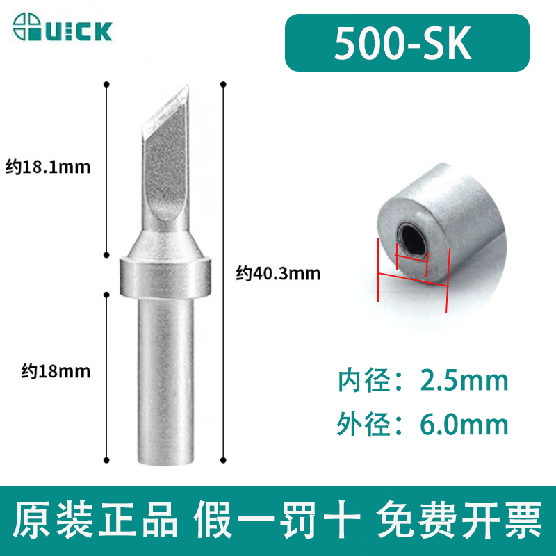 快克(QUICK)205焊台烙铁咀150W大功率快克500-K系列电烙铁头内热式马蹄型刀头 500-SK