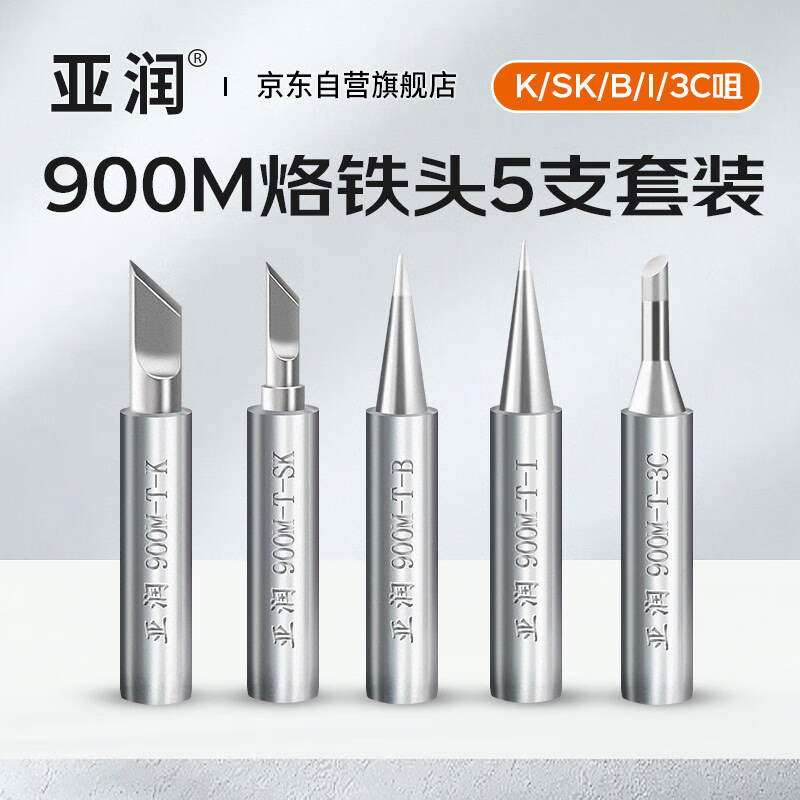 亚润电烙铁头内热式936焊台通用洛铁头尖头圆头刀头马蹄头套装(5支)