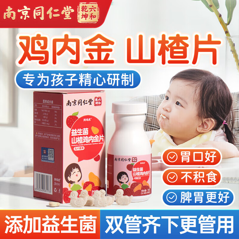 南京同仁堂 山楂鸡内金儿童调理i肠胃婴幼儿积食内热调理脾胃虚弱儿童小儿复合方鸡内金山楂片益生菌咀嚼片
