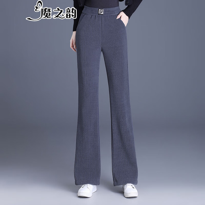 魔之韵高腰宽松微喇叭裤子女士秋冬季新款加绒加厚显瘦保暖休闲裤子2377 蓝灰色秋款单裤 2XL (130-145斤左右)