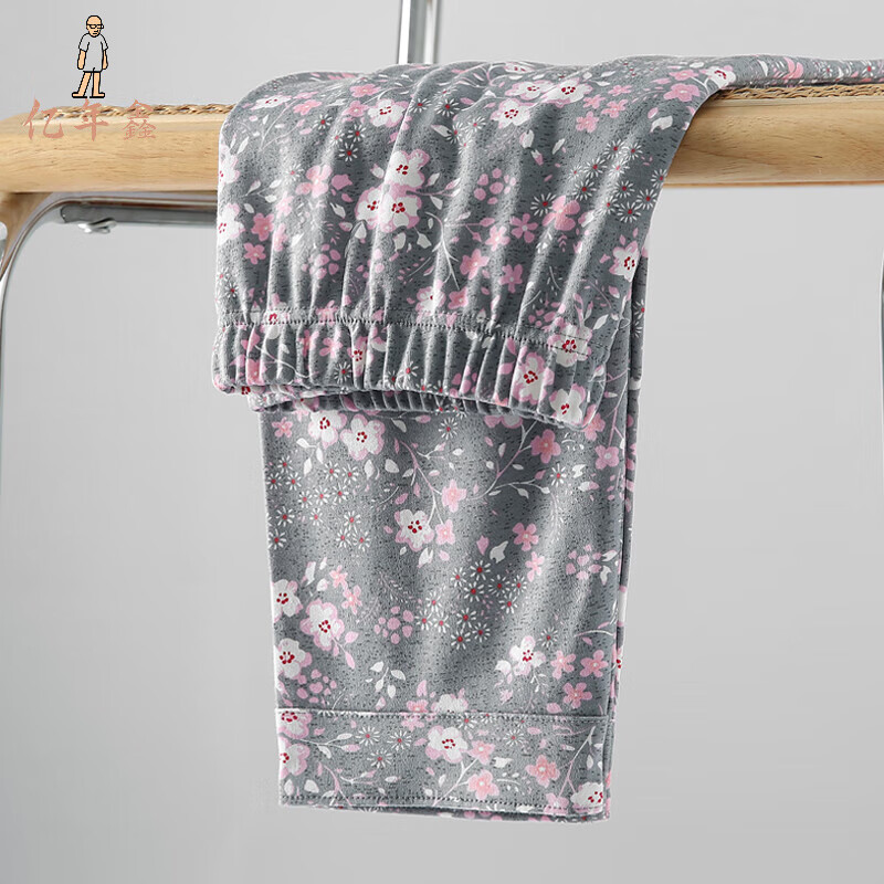 亿年鑫睡裤女长裤加厚纯棉秋冬款家居裤单件妈妈高腰加肥大码可外穿单裤 【裤子】灰粉花 4XL 体重160-180斤