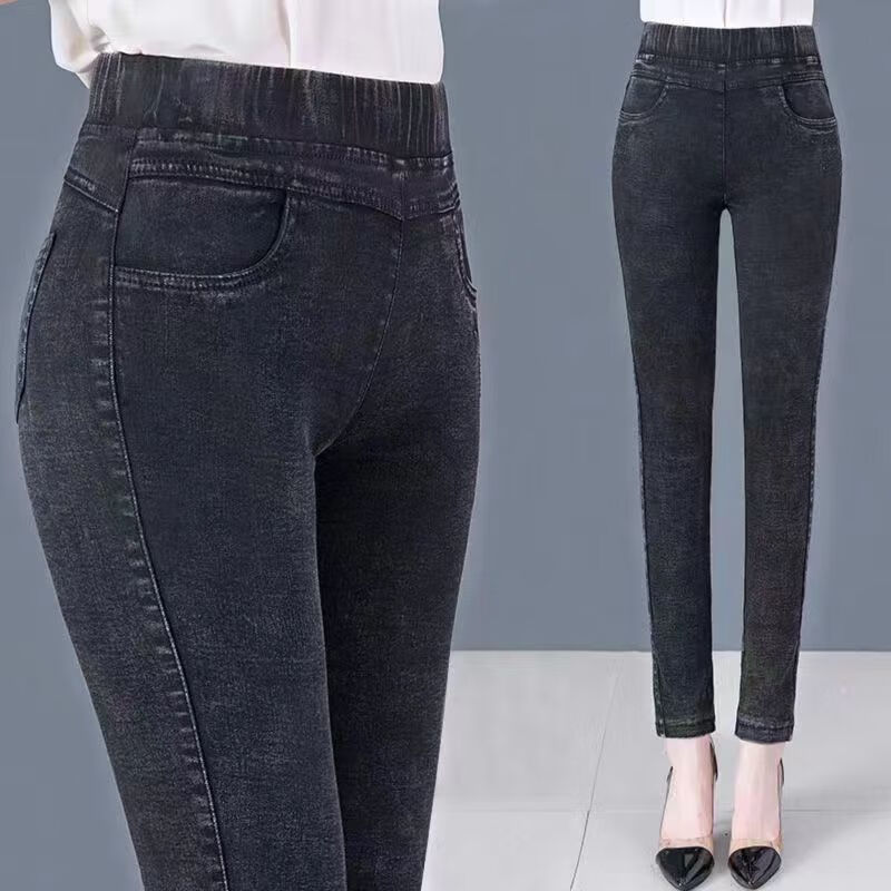 曼利鸟2025秋冬季妈妈裤子女士弹力松紧高腰紧身加绒牛仔裤小脚裤铅笔裤 黑色单裤女裤 均码 31码建议体重130-145斤