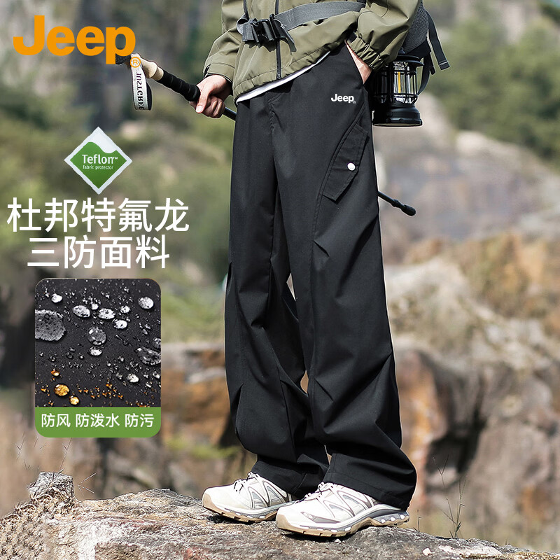 JEEP休闲裤男女秋冬宽松工装裤子三合一特氟龙男裤 莫江黑-单裤 XL