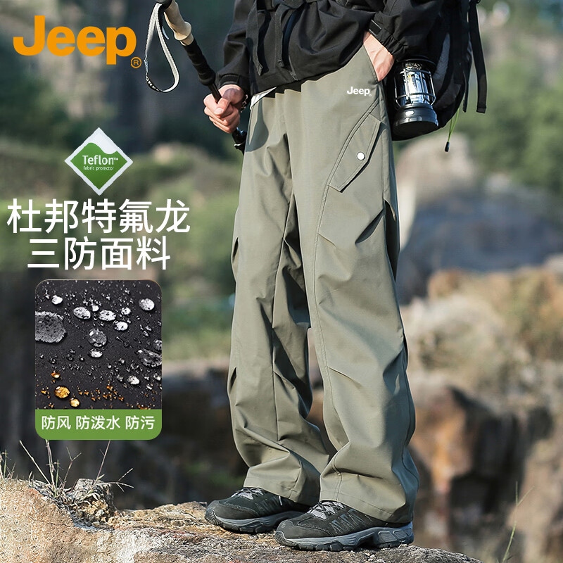 JEEP休闲裤男女秋冬宽松工装裤子三合一特氟龙男裤 松露绿-单裤 XL