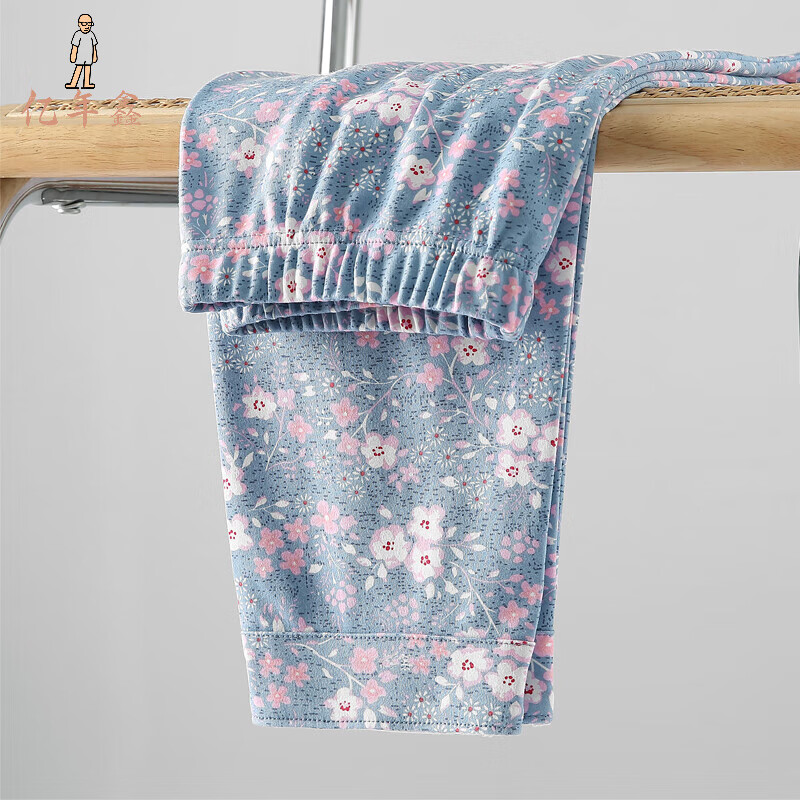 亿年鑫睡裤女长裤加厚纯棉秋冬款家居裤单件妈妈高腰加肥大码可外穿单裤 【裤子】蓝粉花 4XL 体重160-180斤