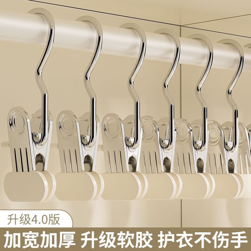 喜泽裤夹子家用无痕裤子衣架专用收纳神器多功能挂钩晾衣夹帽子单裤架 多功能挂钩夹10个装
