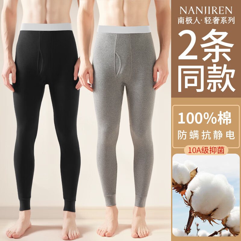 南极人(Nanjiren)2条装男士秋裤男纯棉抑菌线裤秋冬舒适薄款保暖裤明筋打底单裤 【黑色+黑色】 100%棉 XL 【建议120斤-140斤】