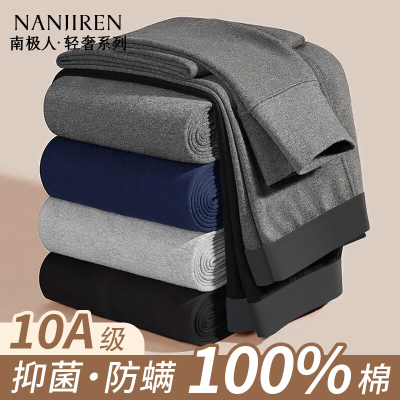 南极人2条装男士秋裤男100%纯棉保暖线裤抑菌防螨薄款打底棉毛单裤4XL