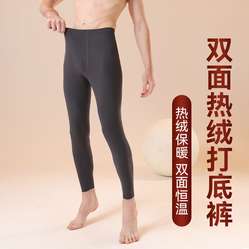 燠阳秋裤男士无痕保暖裤衬裤线裤德绒发热男款薄款高腰棉毛打底裤长裤 德绒单裤-深灰 4XL 【180-200斤】