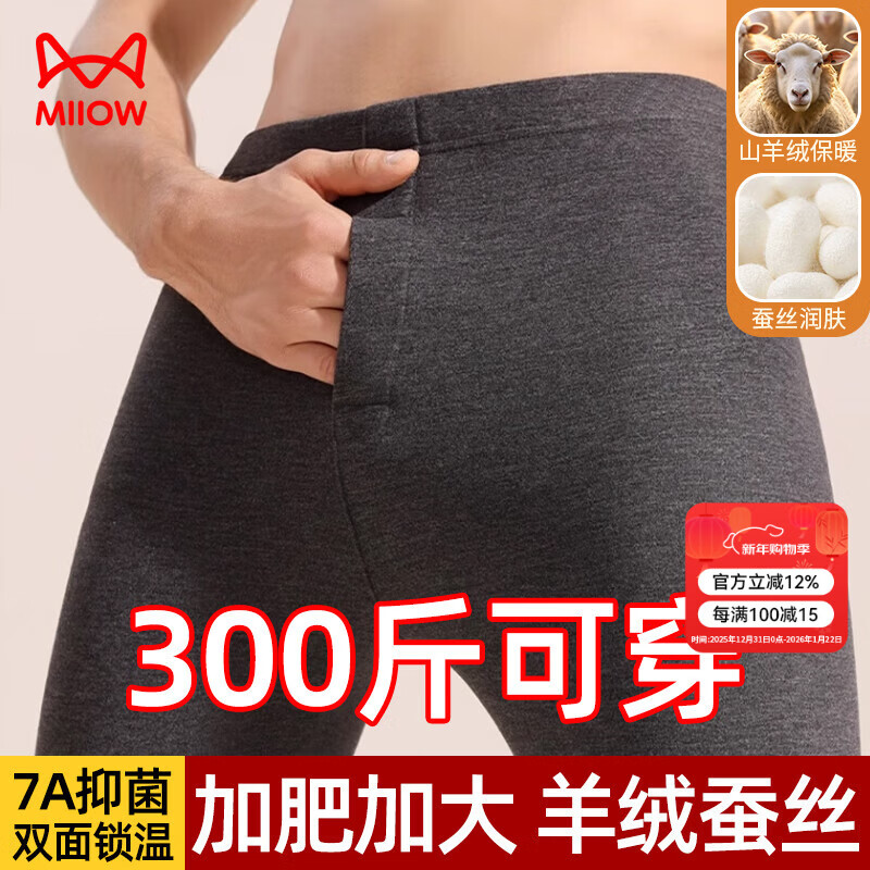 猫人大码男士秋裤男加肥加大含羊绒蚕丝衬裤薄款单裤保暖线裤冬季深灰