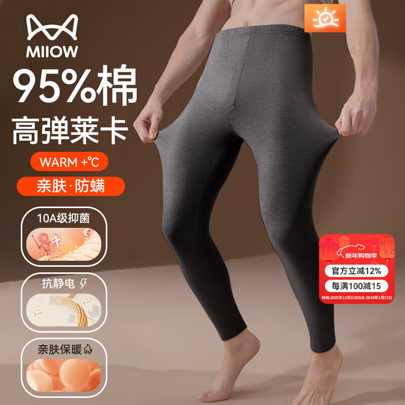 猫人云感棉秋裤男士纯棉保暖线裤男棉毛裤抗菌薄款修身线裤男打底单裤