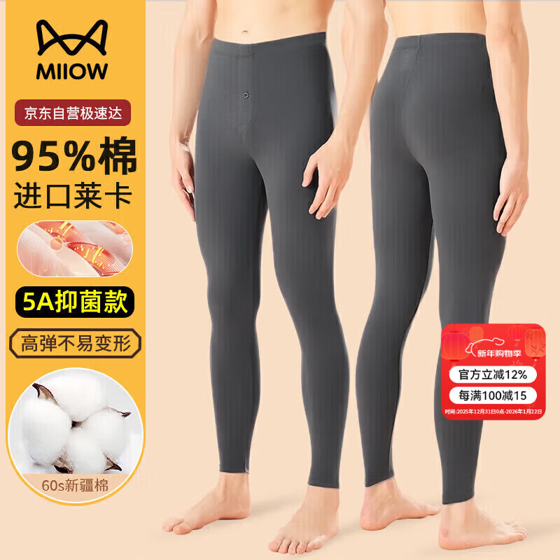 南极人(Nanjiren)2条装男士秋裤男纯棉抑菌线裤秋冬舒适薄款保暖裤明筋打底单裤 【深灰+浅灰】 100%棉 XL 【建议120斤-140斤】